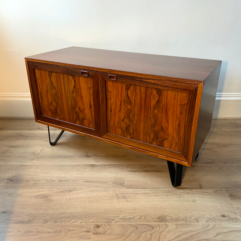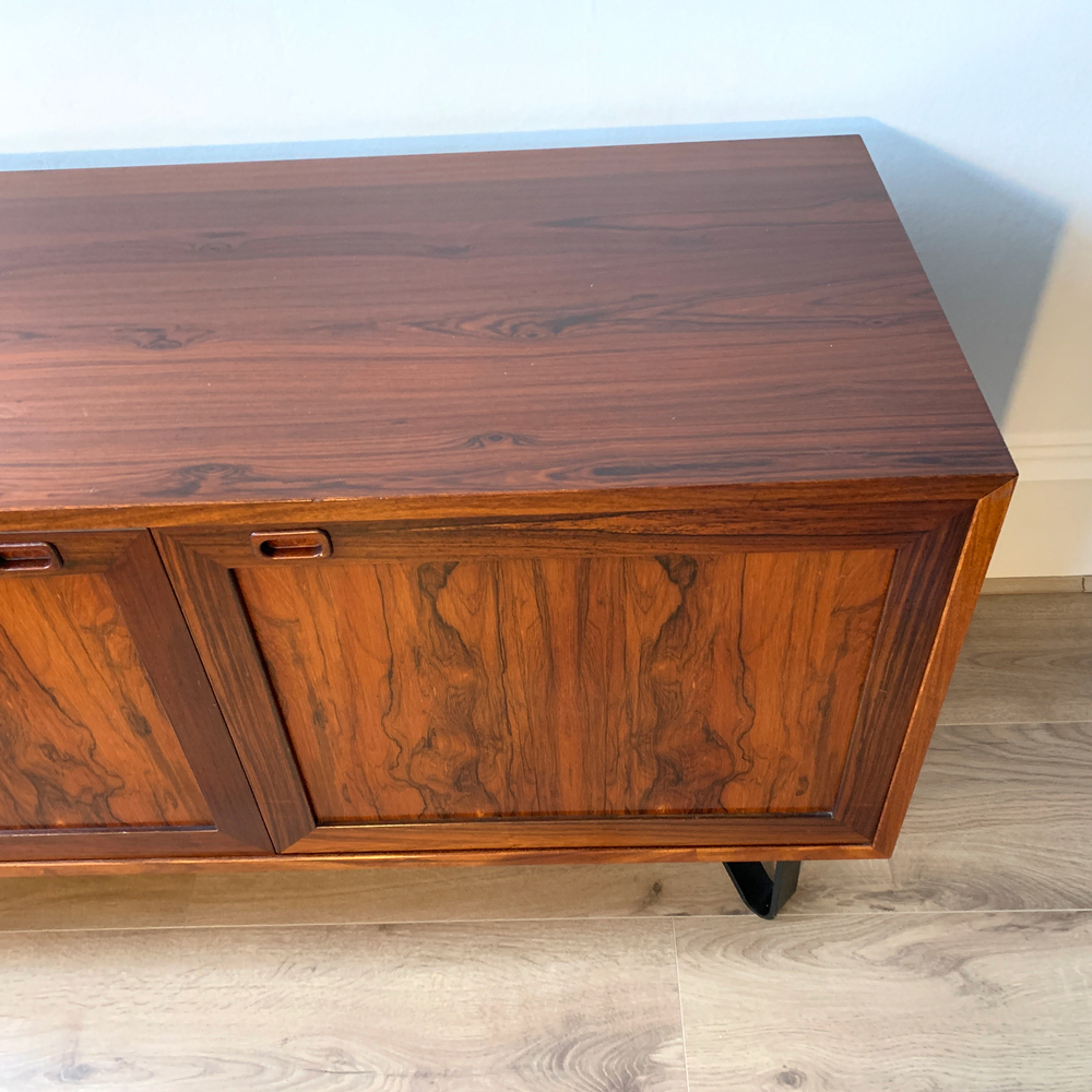 High-quality Danish Rosewood Sideboard from the 1970s and manufactured by Sejling Skabe. Featuring two cupboard doors with recessed door pulls, and internal shelving.