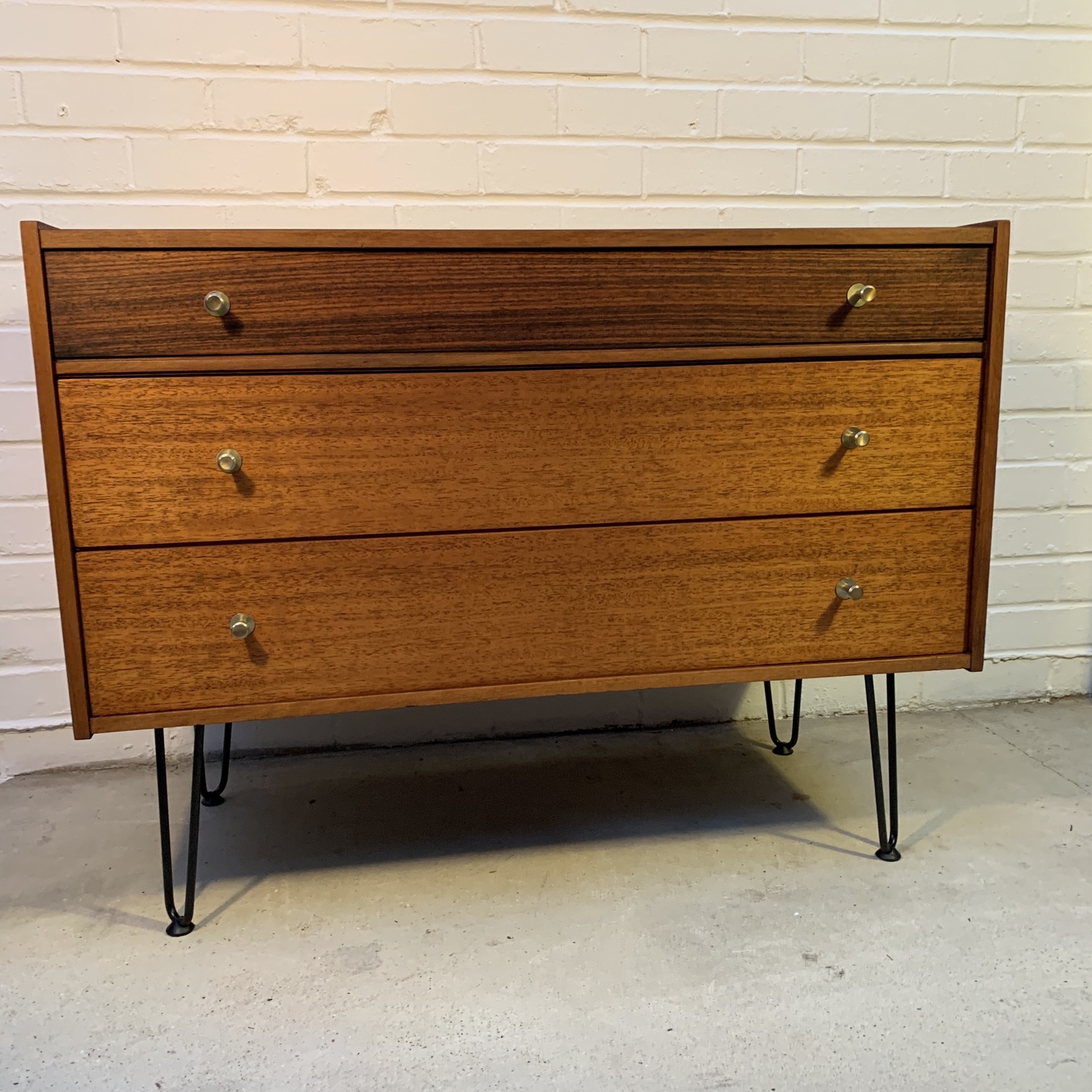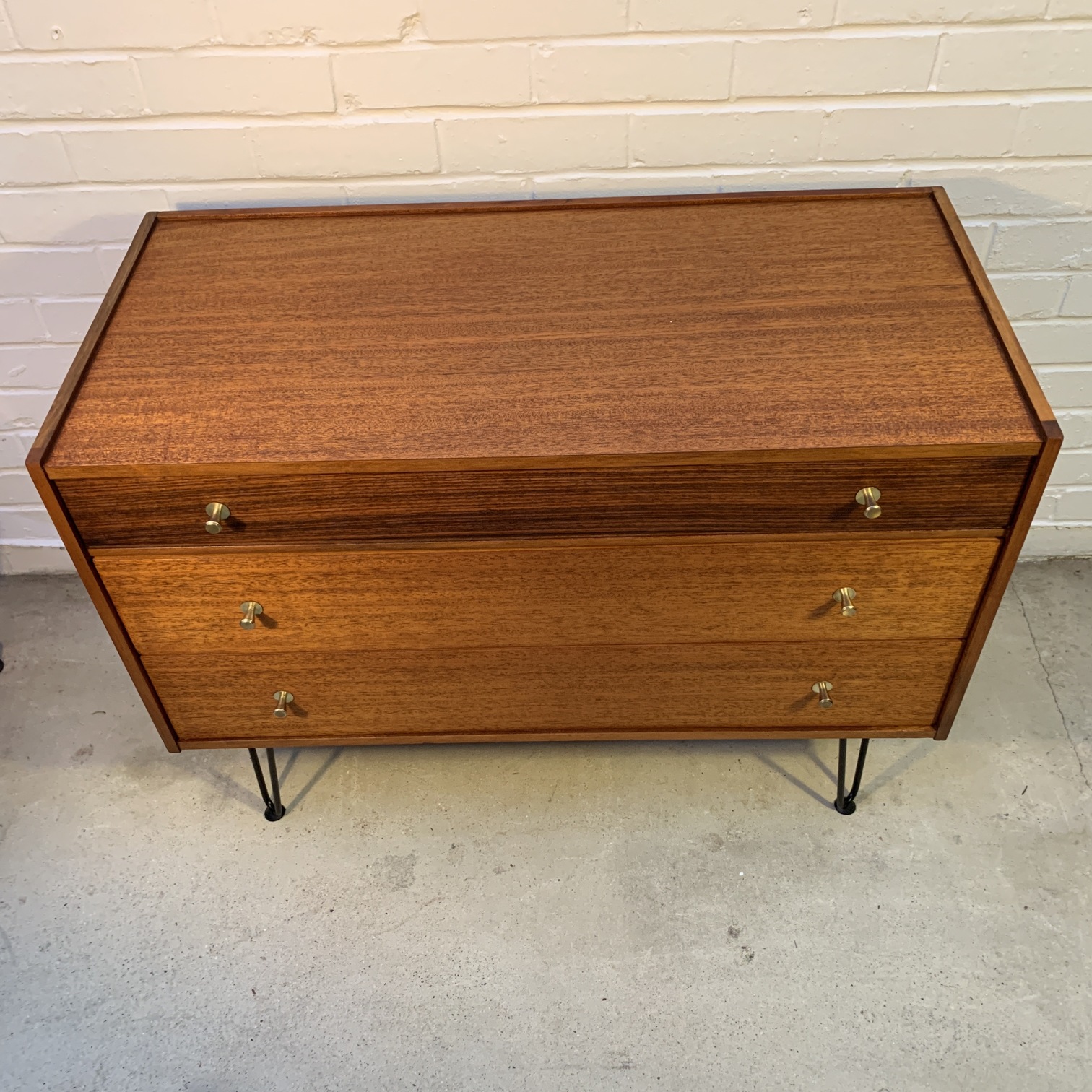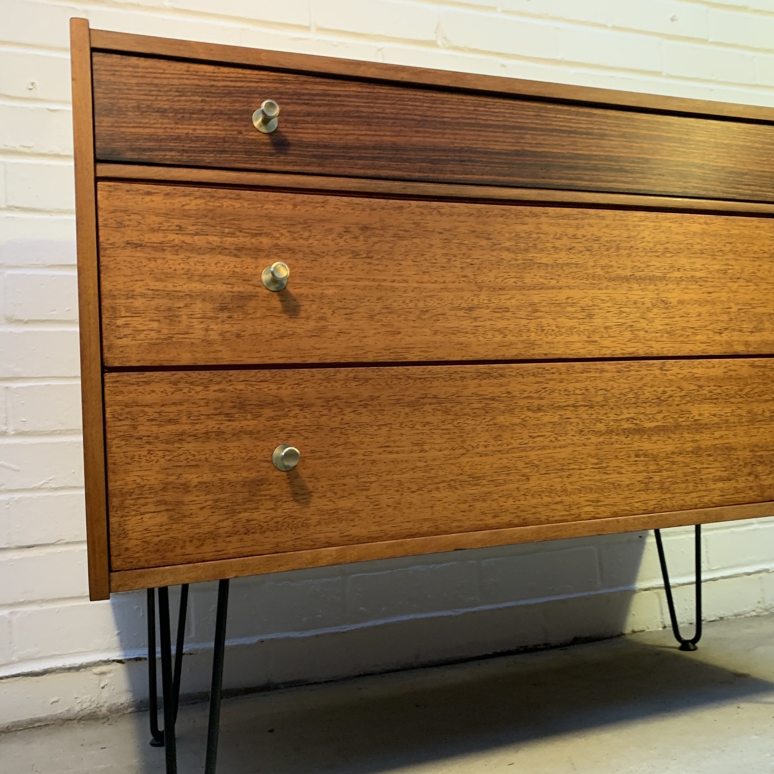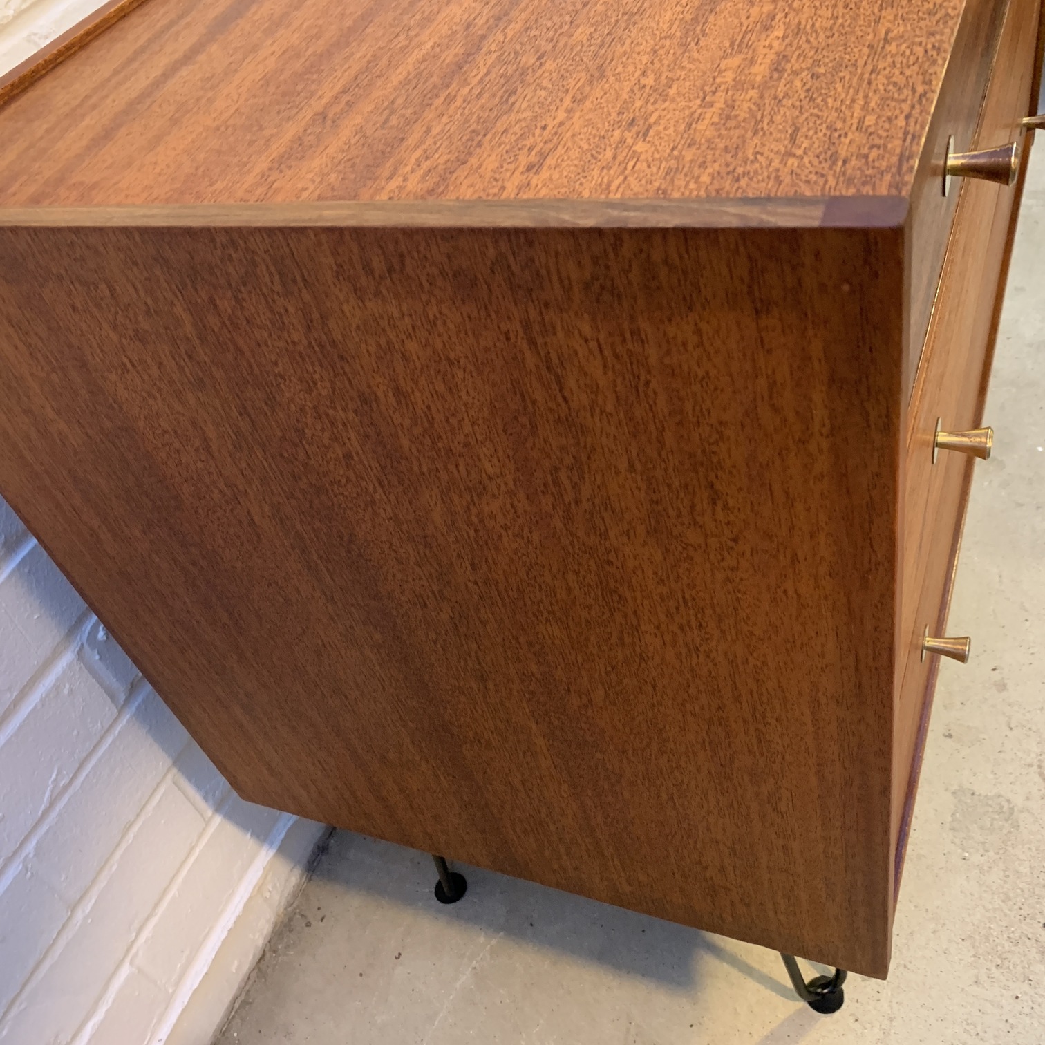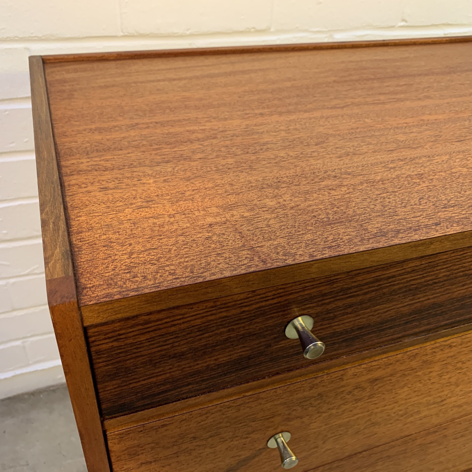 Teak and Rosewood Drawers with Brass Drawer Pulls by William Lawrence of Nottingham. Fully stripped and refinished with Danish oil.