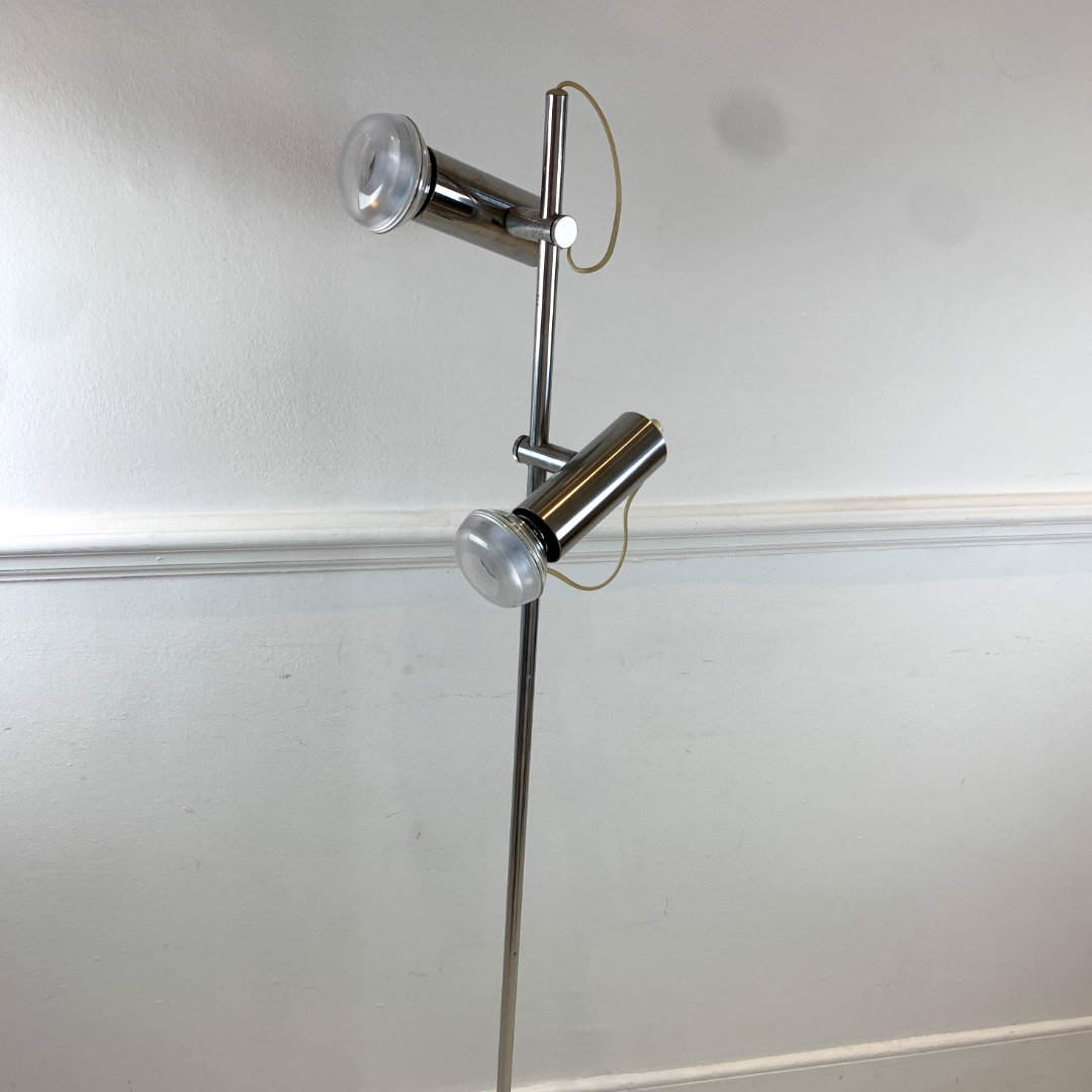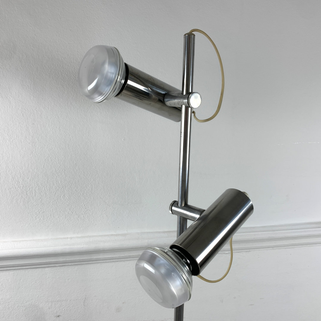 Minimalist Tube Floor Lamp, features 3 function switch that lights up both lamps, lower or upper only, has a Euro plug.